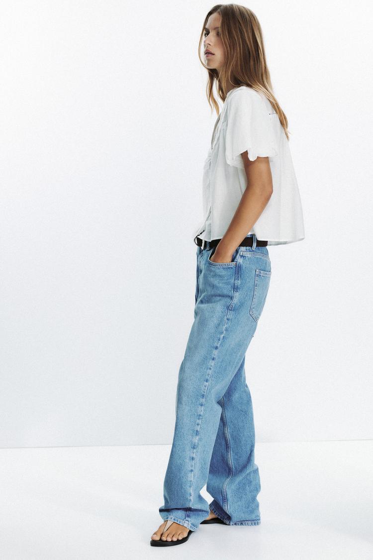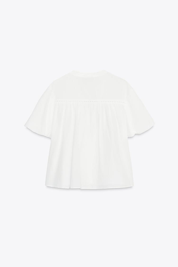 ZARA БЛУЗА С РУКАВАМИ СО СБОРКОЙ ПО НИЗУ, БЕЛЫЙ