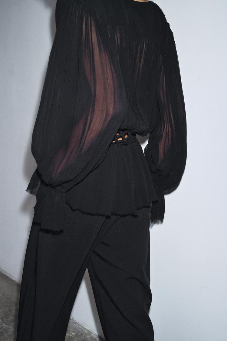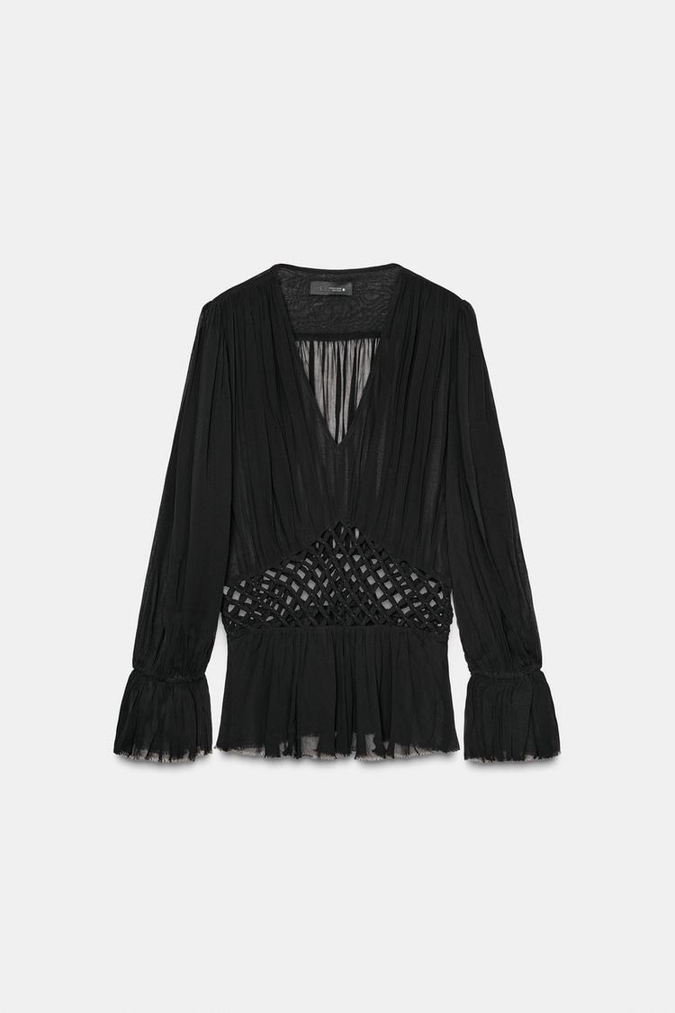 ZARA БЛУЗА С V-ОБРАЗНЫМ ВЫРЕЗОМ И МАЙКРАМЕ — ZW COLLECTION, ЧЕРНЫЙ