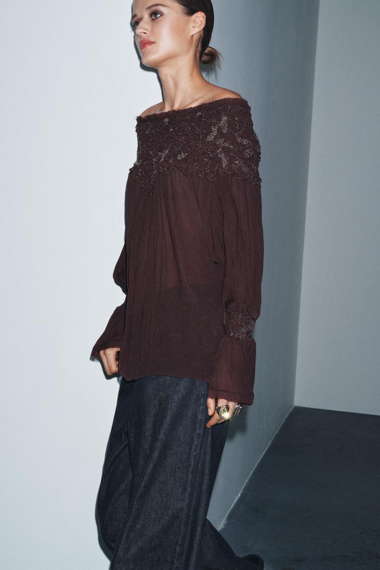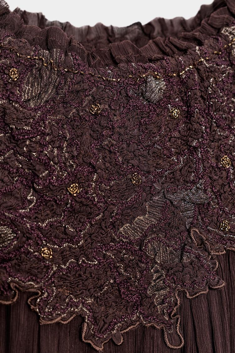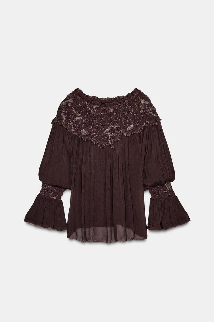 ZARA БЛУЗА С ВЫШИВКОЙ, БАКЛАЖАННЫЙ