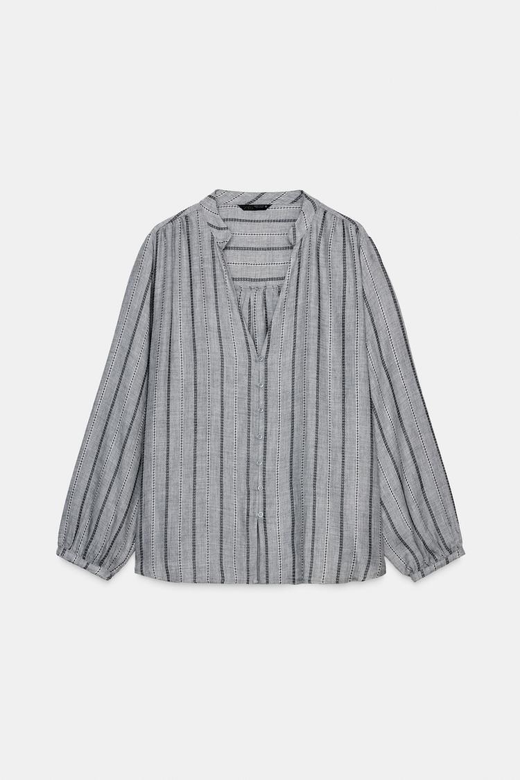 ZARA БЛУЗА В ПОЛОСКУ ИЗ ТКАНИ, СЕРЫЙ МЕЛАНЖ
