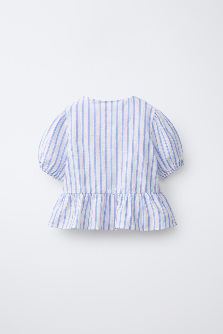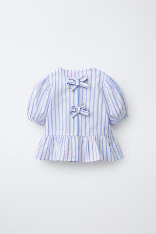 ZARA БЛУЗА В ПОЛОСКУ С БАНТИКАМИ, ЖЕЛТОВАТО-БЕЛЫЙ
