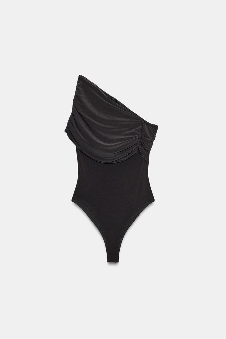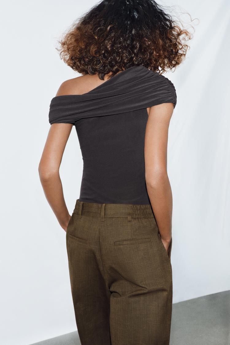 ZARA БОДИ АСИММЕТРИЧНОГО КРОЯ СО СБОРКАМИ, АНТРАЦИТОВО-СЕРЫЙ