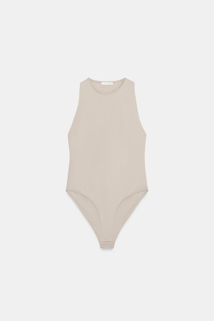 ZARA БОДИ ХАЛТЕР ИЗ ПОЛИАМИДА, ПЕСОЧНЫЙ