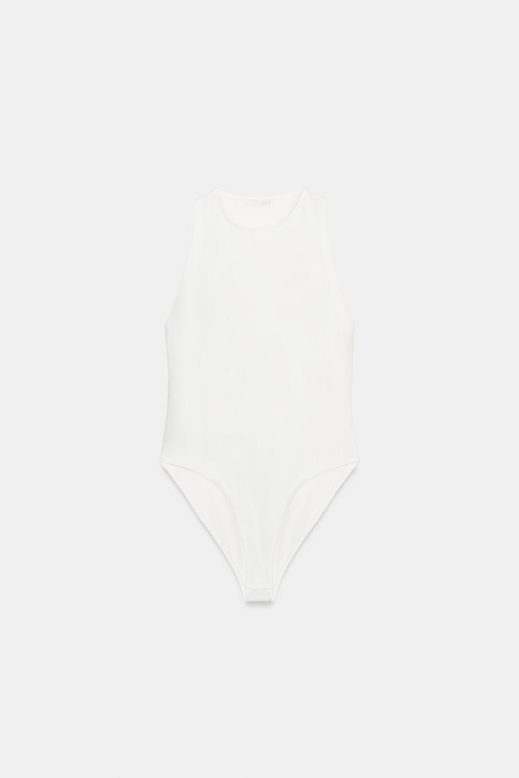 ZARA БОДИ ХАЛТЕР ИЗ ПОЛИАМИДА, ЖЕЛТОВАТО-БЕЛЫЙ