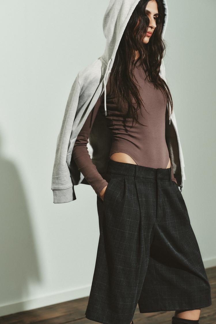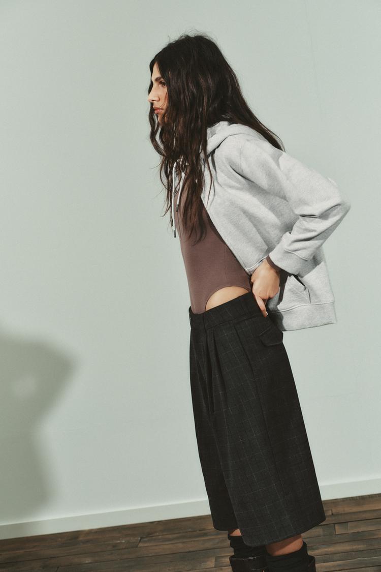ZARA БОДИ ИЗ ХЛОПКА И МОДАЛА, СЕРО-КОРИЧНЕВЫЙ