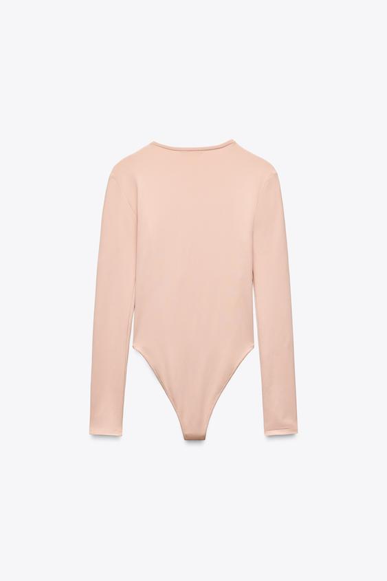 ZARA БОДИ ИЗ ПОЛИАМИДА С ДЛИННЫМИ РУКАВАМИ, ЦВЕТ РОЗОВОГО ДЕРЕВА