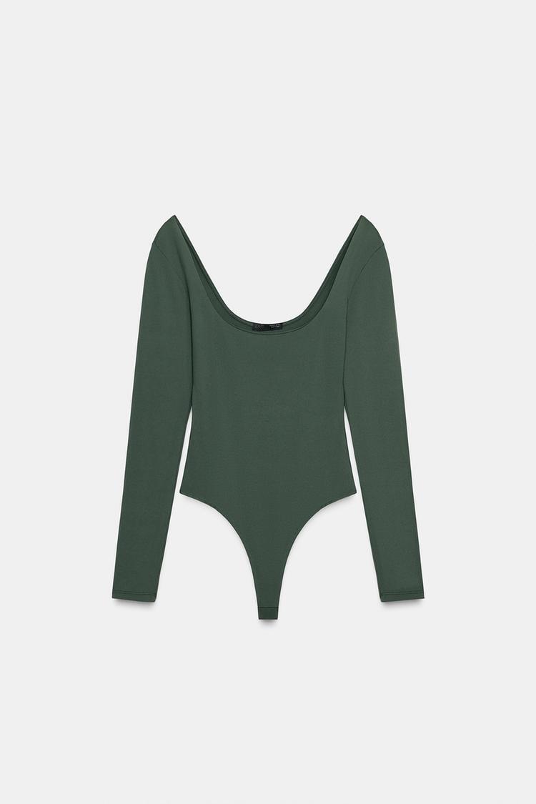 ZARA БОДИ ИЗ ПОЛИАМИДА С КВАДРАТНЫМ ВЫРЕЗОМ, МЯГКИЙ ЗЕЛЕНЫЙ