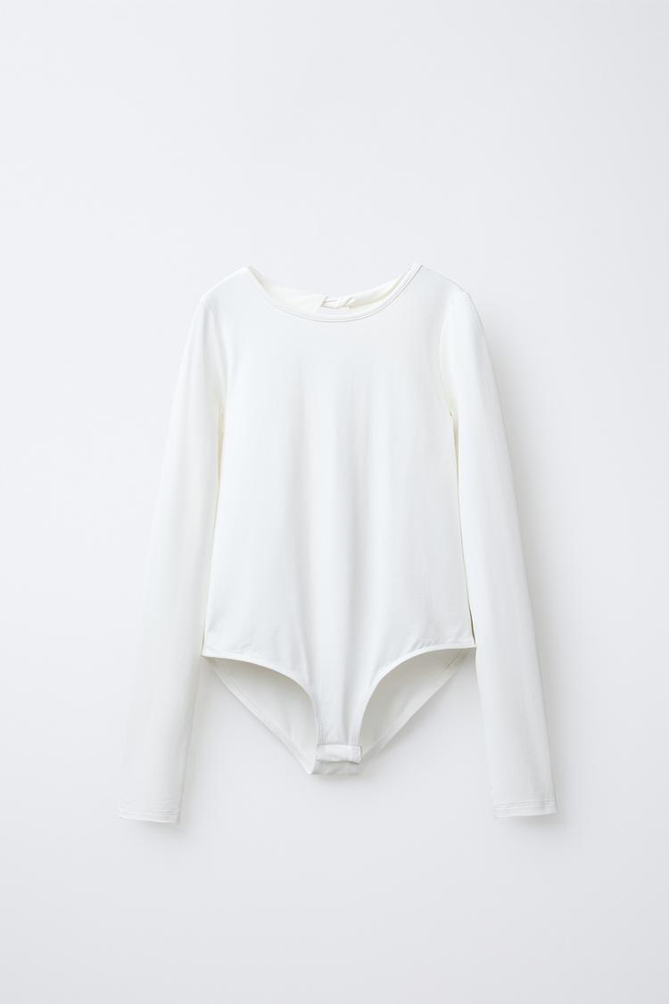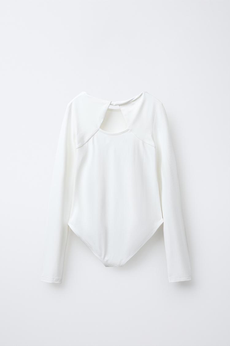 ZARA БОДИ ИЗ ПОЛИАМИДА С ВЫРЕЗАМИ, БЕЛЫЙ
