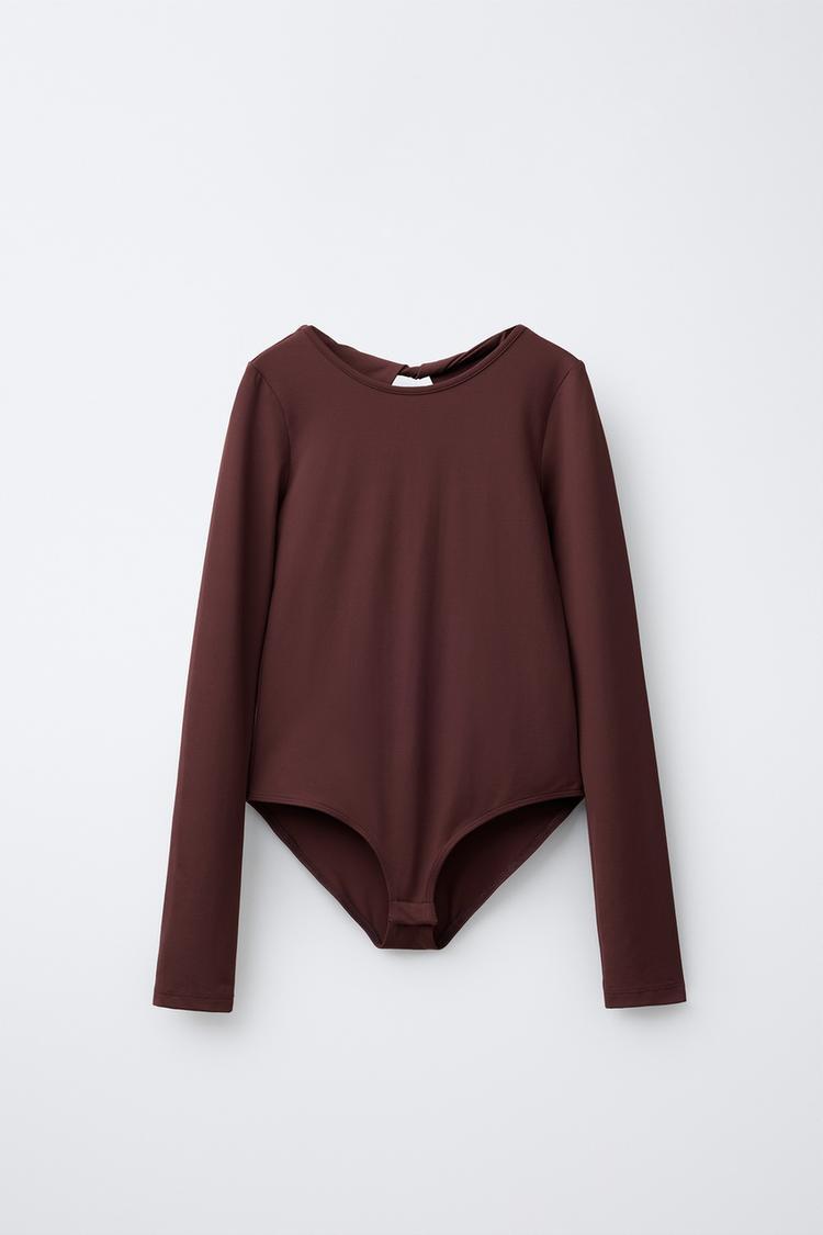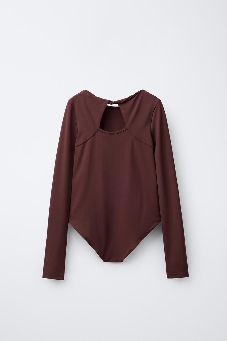 ZARA БОДИ ИЗ ПОЛИАМИДА С ВЫРЕЗАМИ, КОРИЧНЕВЫЙ