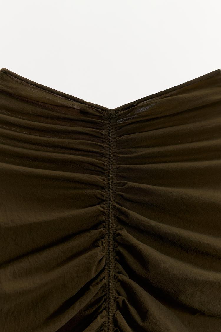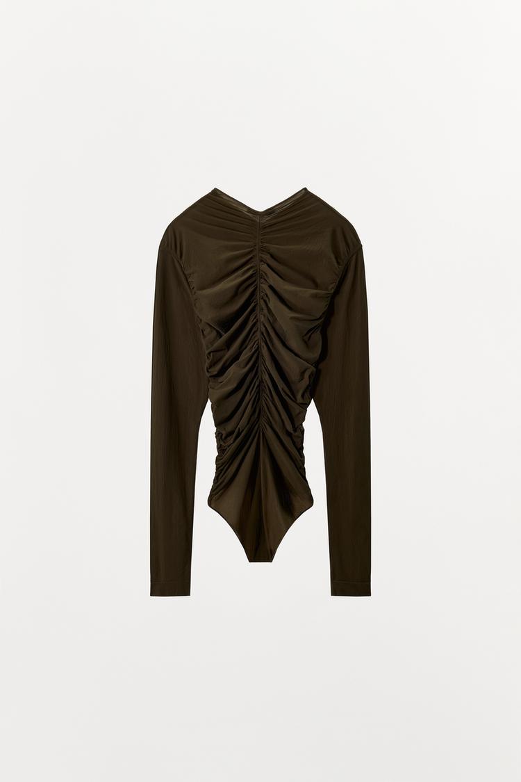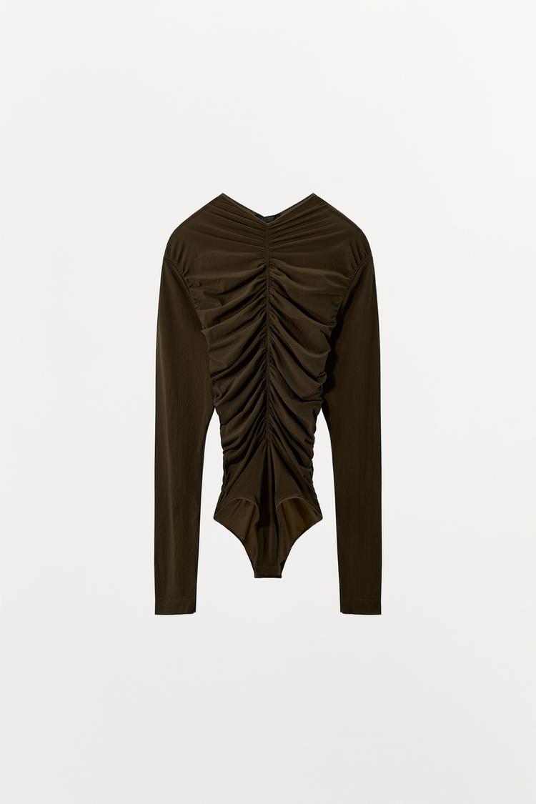 ZARA БОДИ ИЗ ПОЛИАМИДА СО СБОРКАМИ, ЗЕЛЕНЫЙ