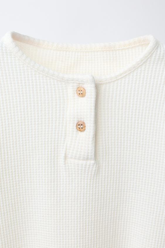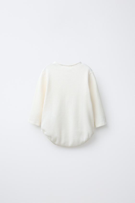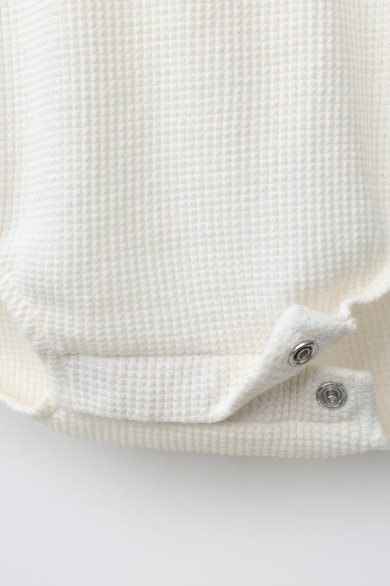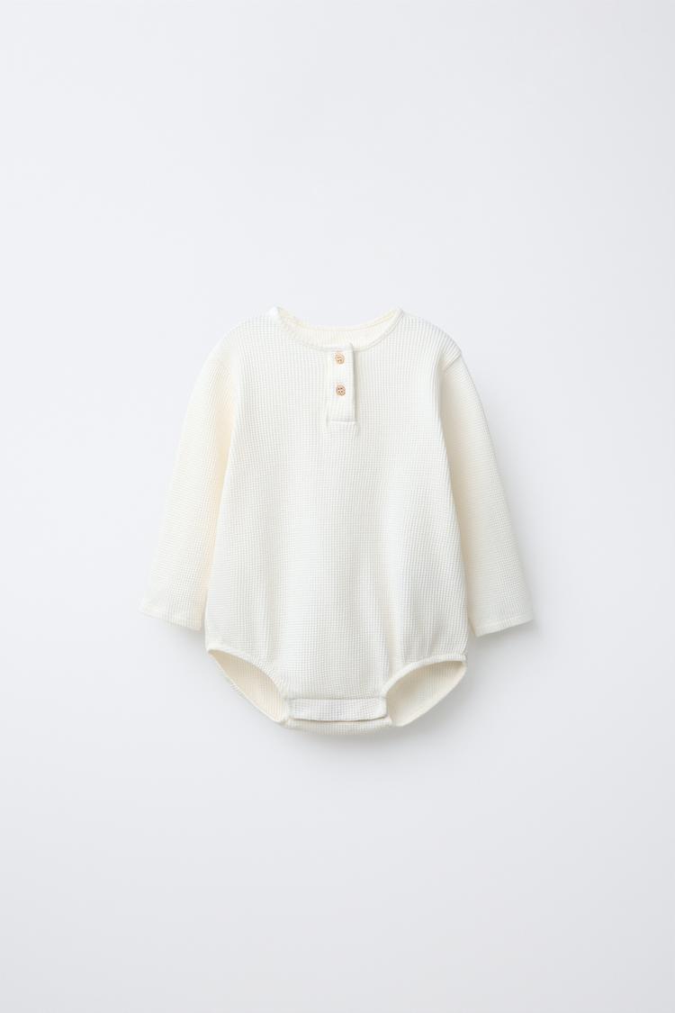ZARA БОДИ ИЗ РИФЛЕНОГО ТРИКОТАЖА С ВОРОТНИКОМ НА ПУГОВИЦАХ, ЭКРЮ