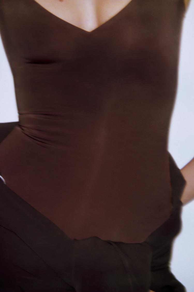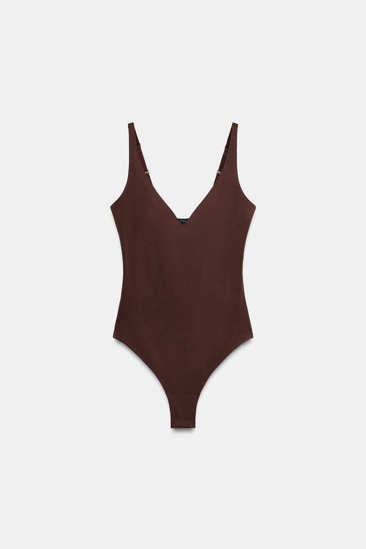 ZARA БОДИ ИЗ СМЕСОВОГО ПОЛИАМИДА, КОРИЧНЕВЫЙ