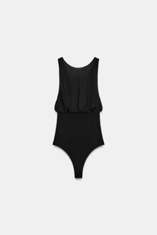 ZARA БОДИ ИЗ ЖОРЖЕТА С КОМБИНИРОВАННЫМИ БАНТАМИ, ЧЕРНЫЙ