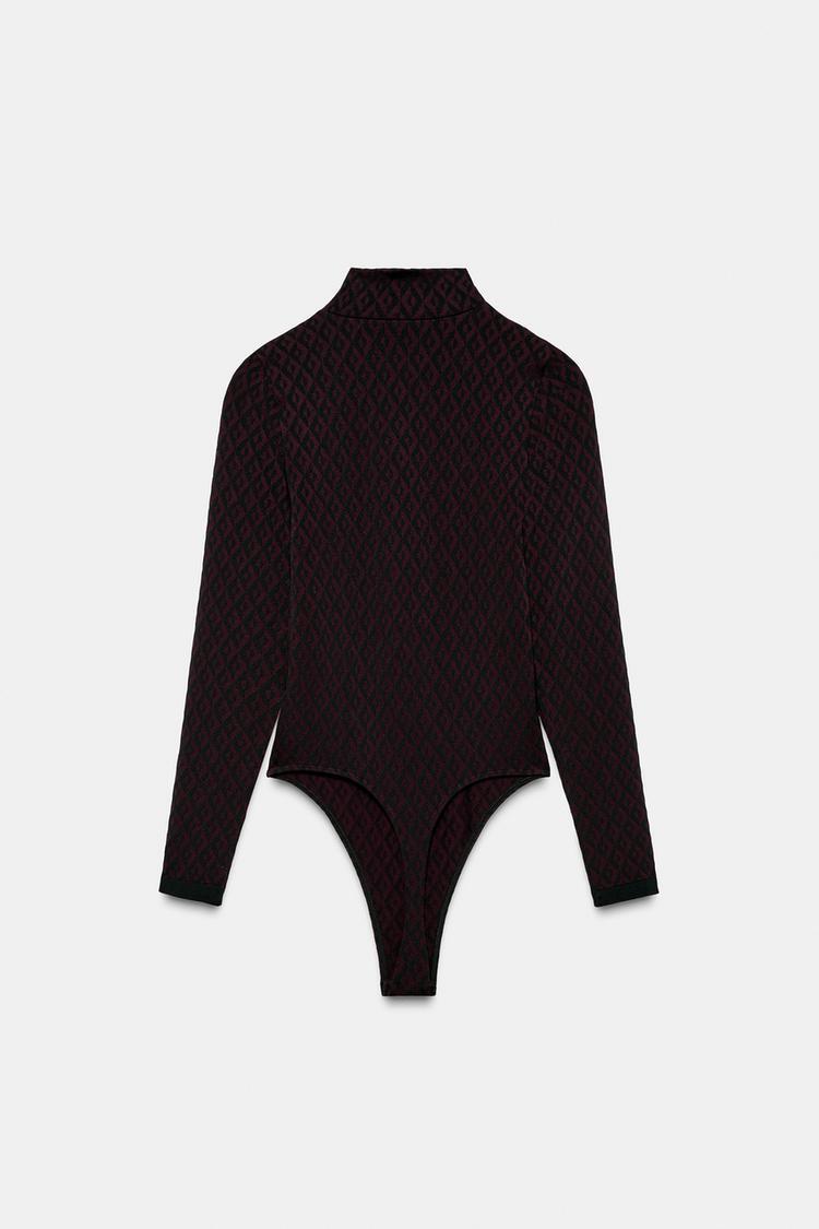 ZARA БОДИ НА МОЛНИИ С КОНТРАСТНЫМ УЗОРОМ, БОРДОВЫЙ