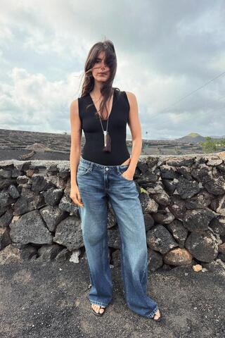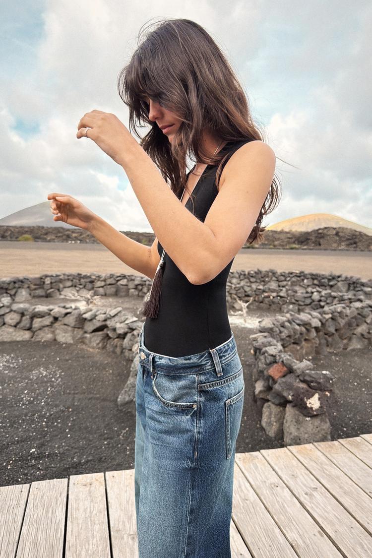 ZARA БОДИ ПРИТАЛЕННОЕ С V-ОБРАЗНЫМ ВЫРЕЗОМ, ЧЕРНЫЙ