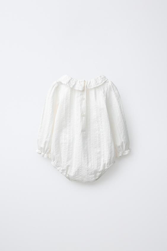 ZARA БОДИ С АЖУРНОЙ ВЫШИВКОЙ, ЭКРЮ