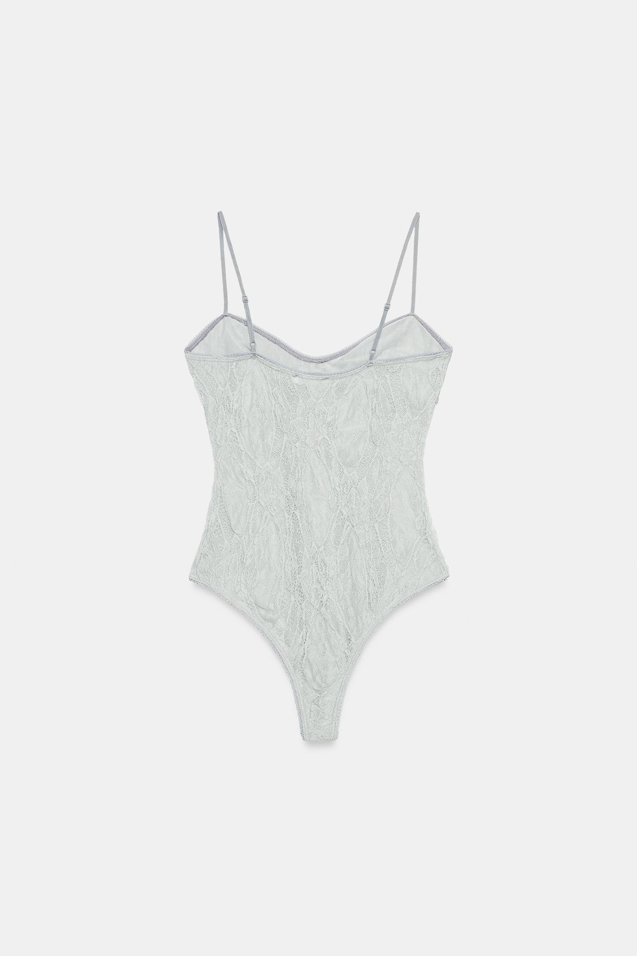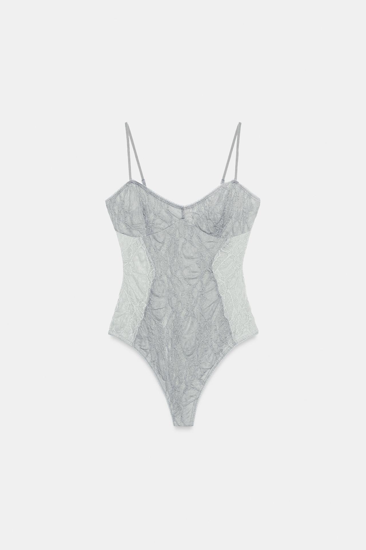 ZARA БОДИ С КОНТРАСТНЫМ КРУЖЕВОМ, СЕРО-СИНИЙ