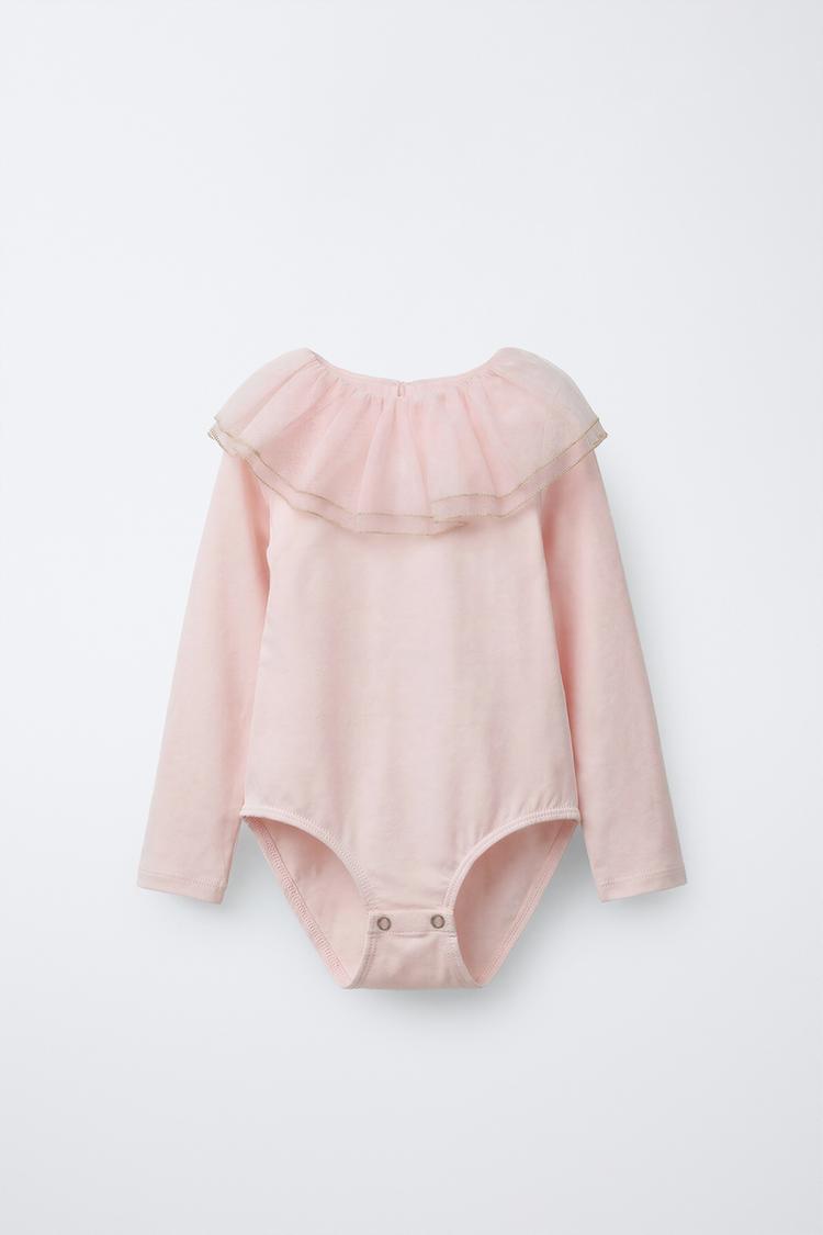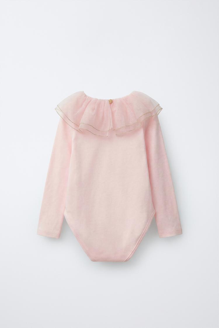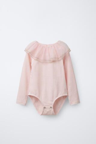ZARA БОДИ С КОНТРАСТНЫМ ВОРОТНИКОМ, ПАСТЕЛЬНО-ЖЕЛТЫЙ