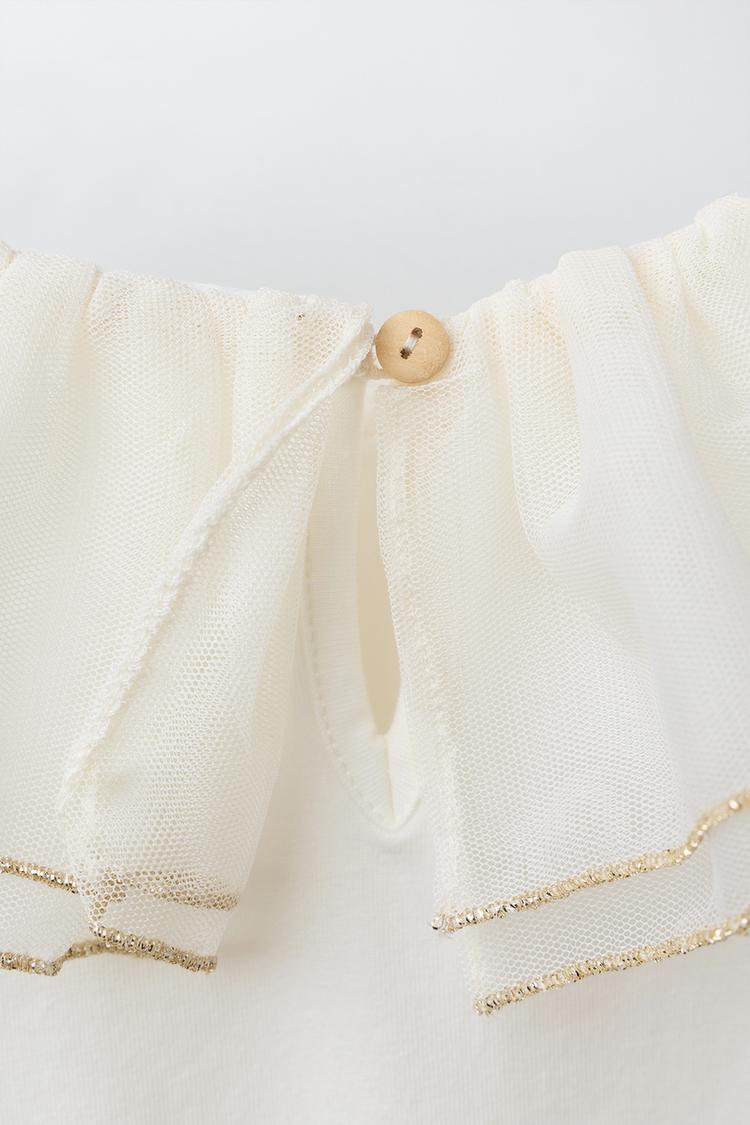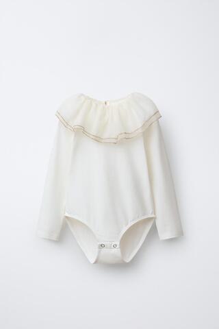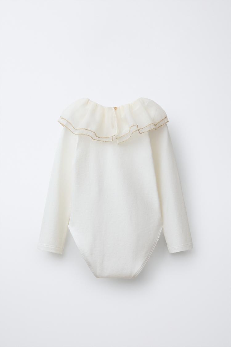 ZARA БОДИ С КОНТРАСТНЫМ ВОРОТНИКОМ, ЖЕЛТОВАТО-БЕЛЫЙ