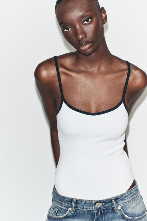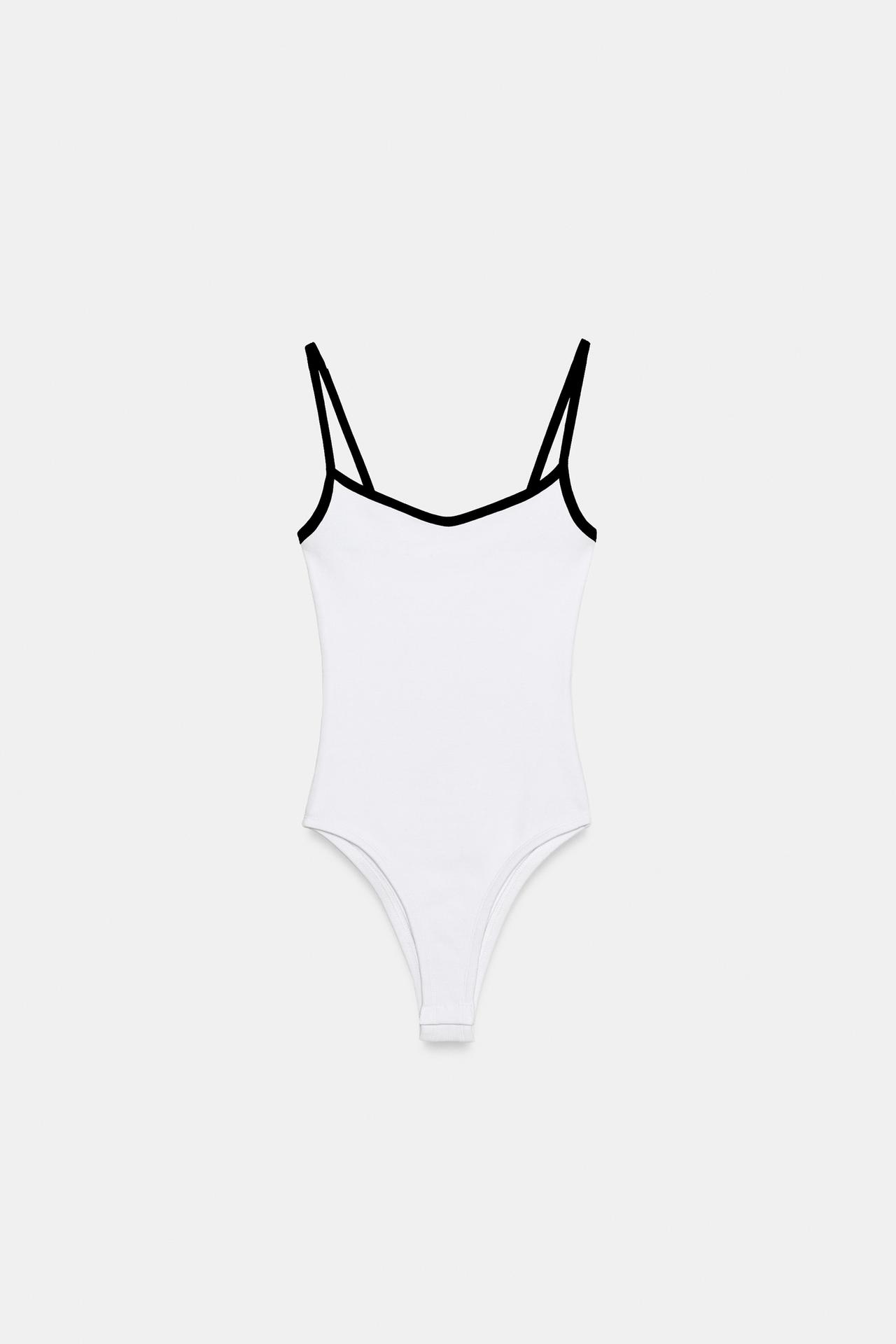ZARA БОДИ С КОНТРАСТНЫМИ ВСТАВКАМИ, БЕЛЫЙ/МОРСКОЙ СИНИЙ