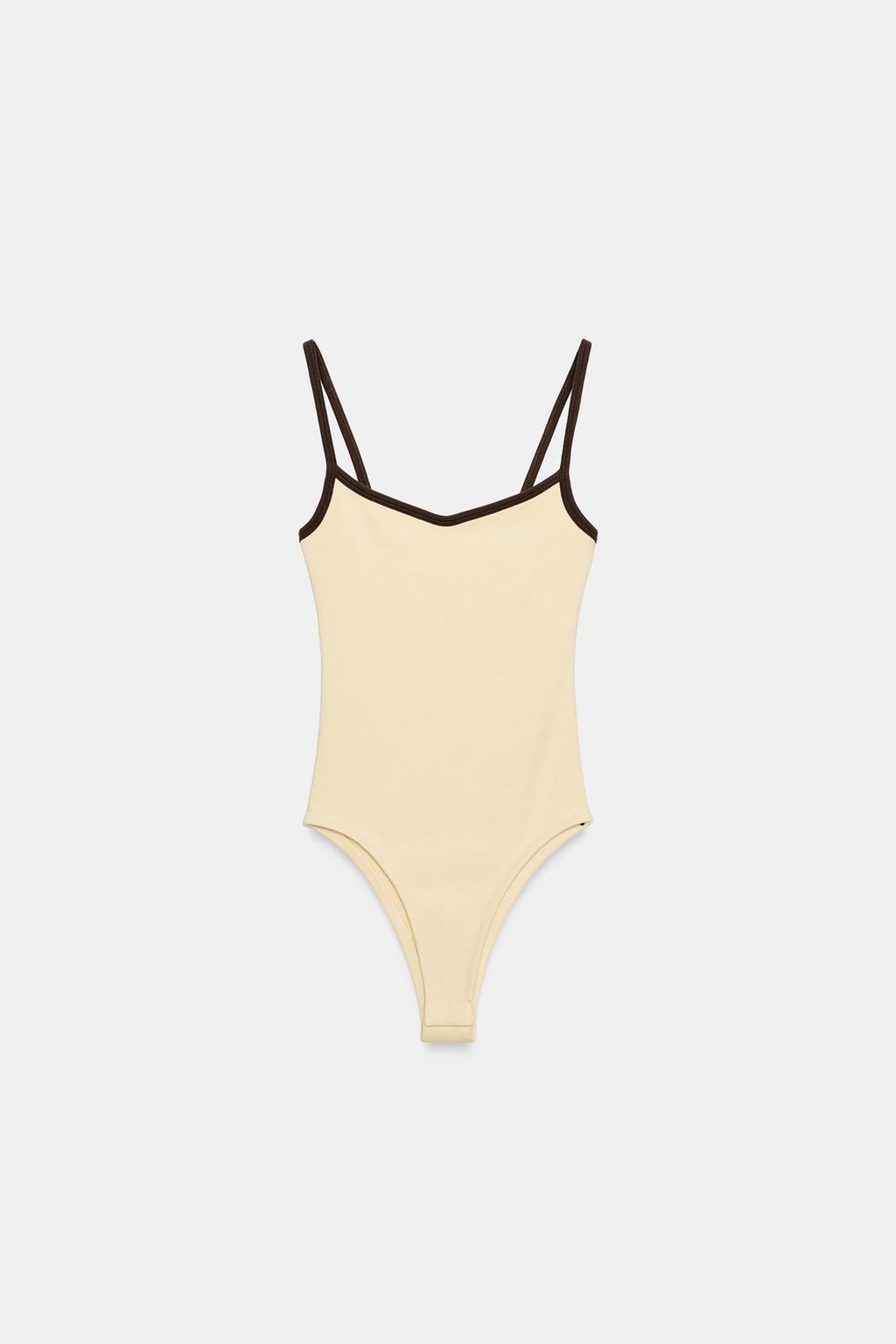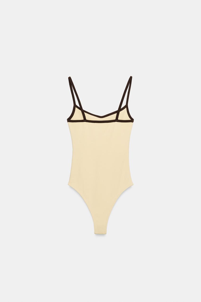 ZARA БОДИ С КОНТРАСТНЫМИ ВСТАВКАМИ, КОРИЧНЕВЫЙ/ЭКРЮ