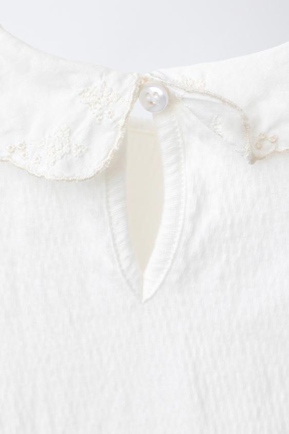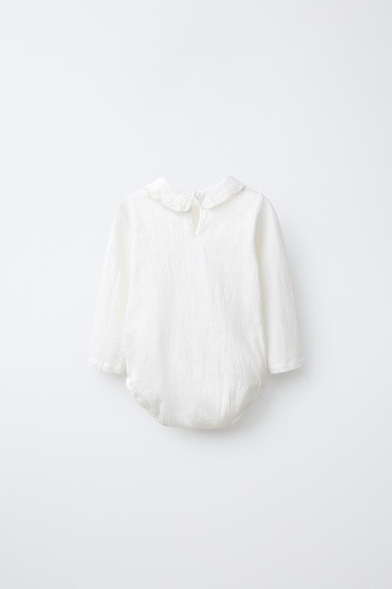 ZARA БОДИ С КРУГЛЫМ ВОРОТНИКОМ И ШВЕЙЦАРСКОЙ ВЫШИВКОЙ, ЖЕЛТОВАТО-БЕЛЫЙ