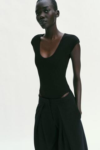 ZARA БОДИ С КРУГЛЫМ ВЫРЕЗОМ, ЧЕРНЫЙ