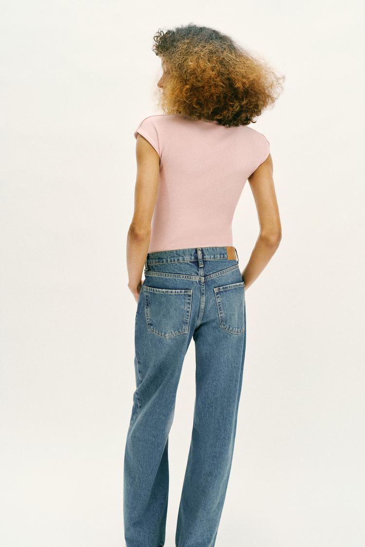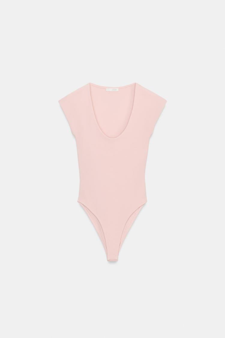ZARA БОДИ С КРУГЛЫМ ВЫРЕЗОМ, ПУДРОВО-РОЗОВЫЙ