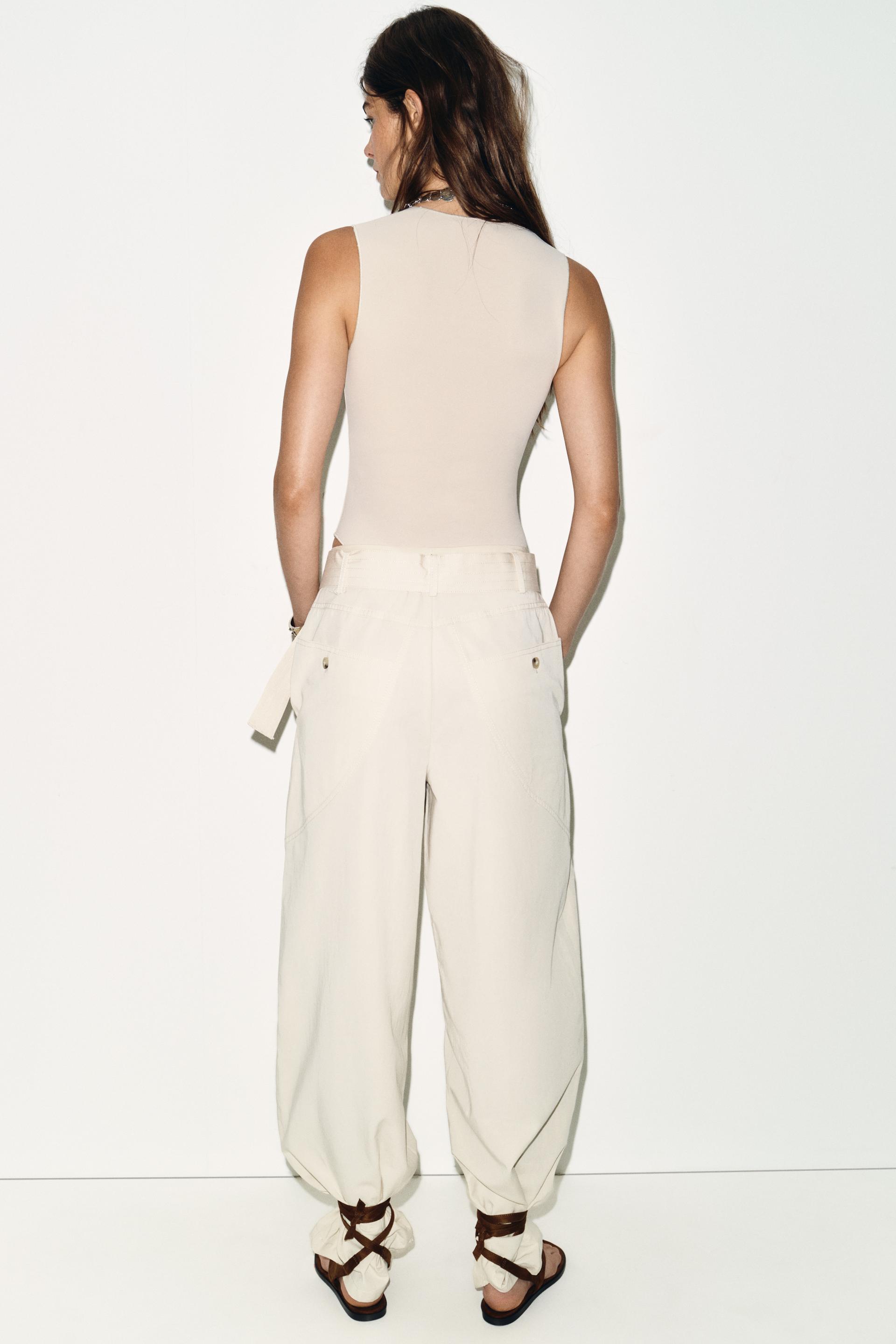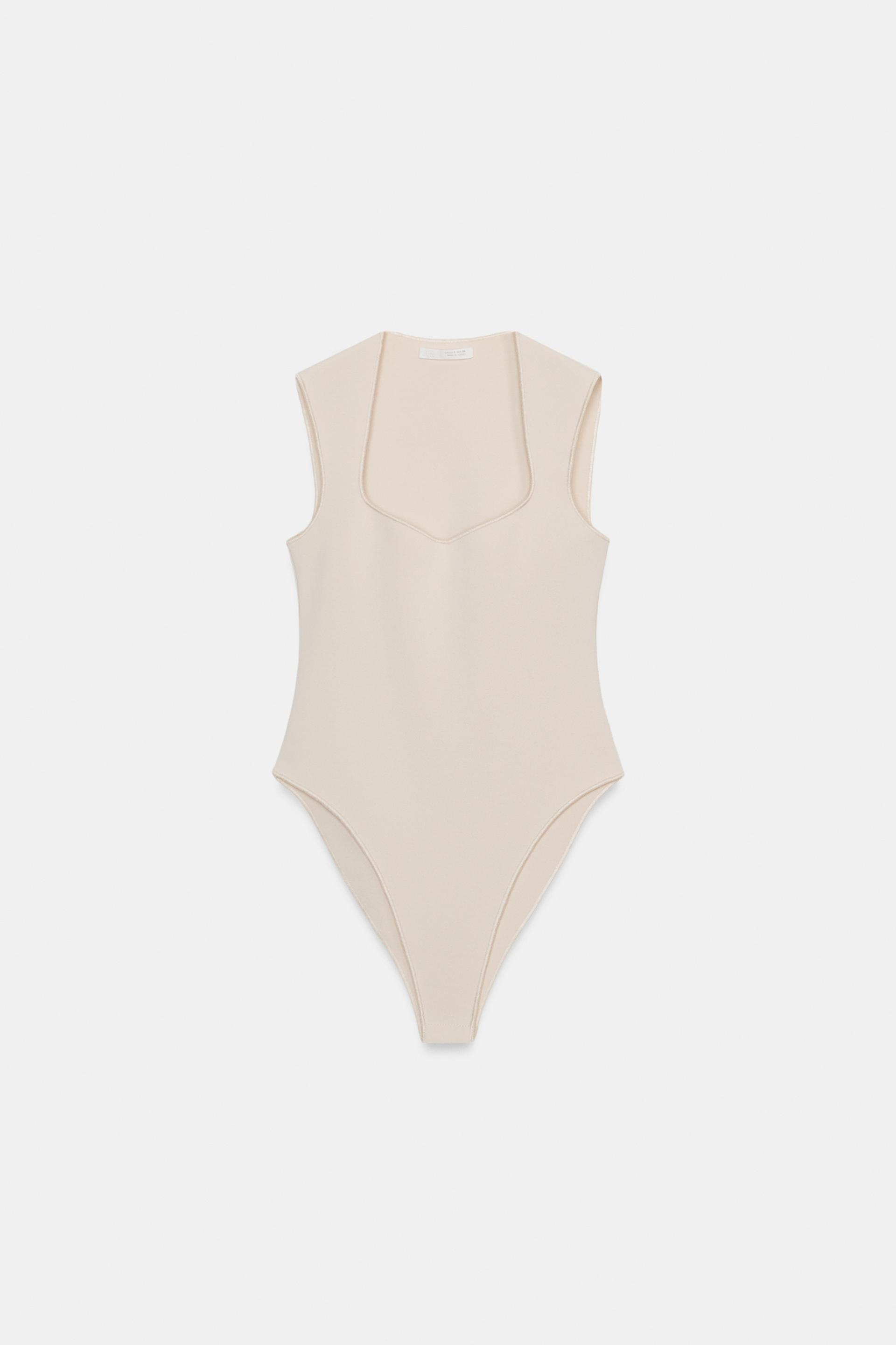 ZARA БОДИ С КВАДРАТНЫМ ВЫРЕЗОМ ИЗ ЭЛАСТИЧНОЙ ТКАНИ, ЭКРЮ