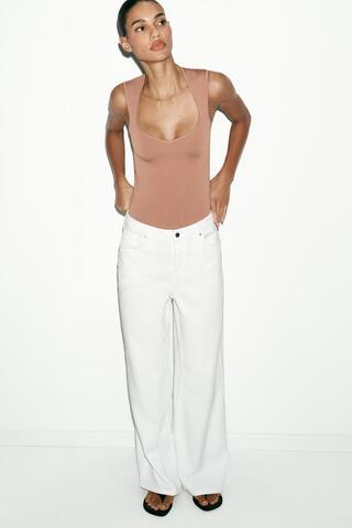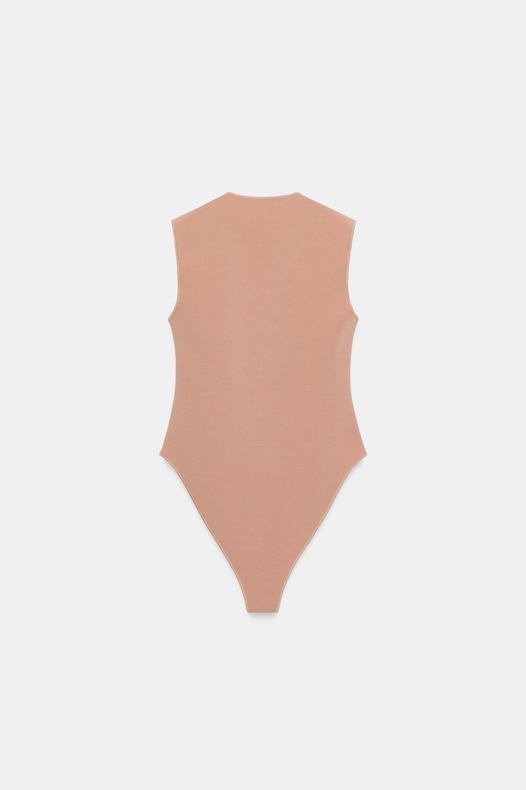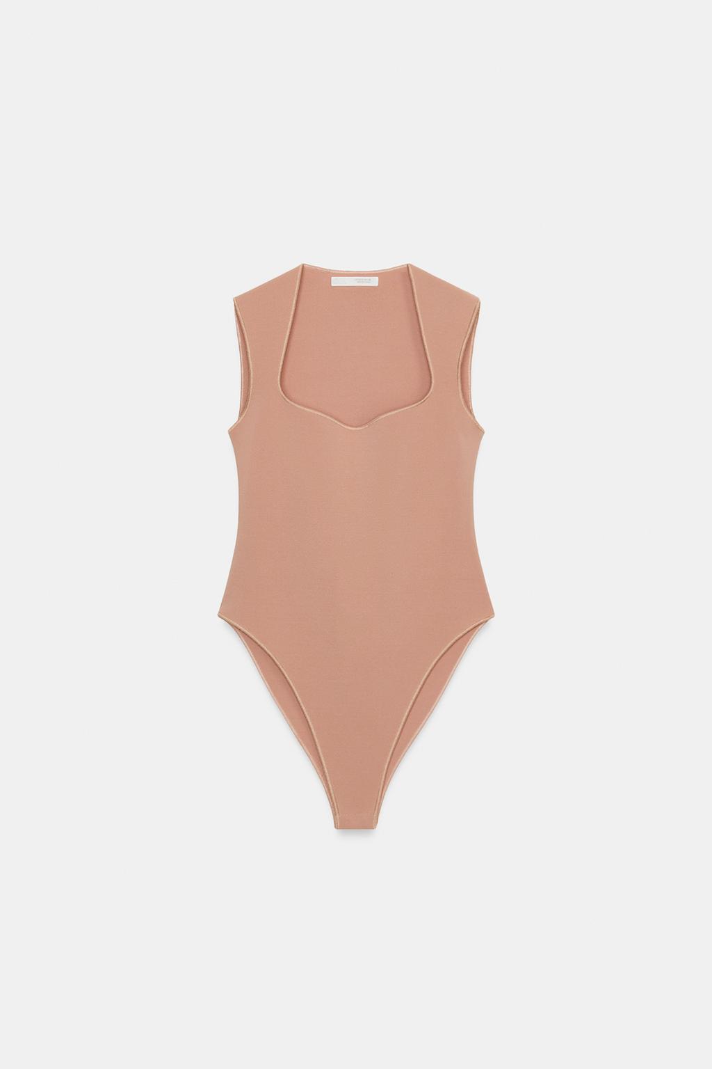 ZARA БОДИ С КВАДРАТНЫМ ВЫРЕЗОМ ИЗ ЭЛАСТИЧНОЙ ТКАНИ, ЦВЕТ РОЗОВОГО ДЕРЕВА