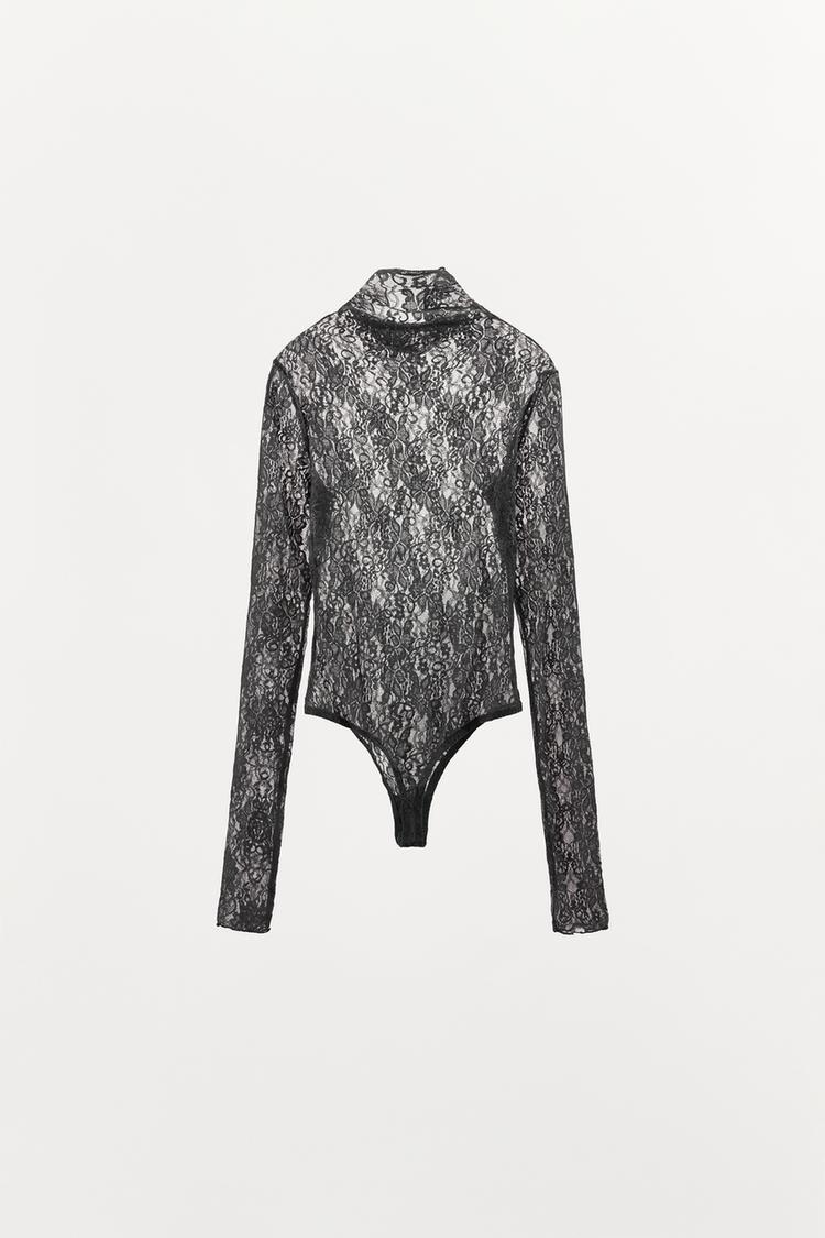 ZARA БОДИ С ЦВЕТОЧНОЙ ВЫШИВКОЙ ИЗ КРУЖЕВА, СЕРЫЙ