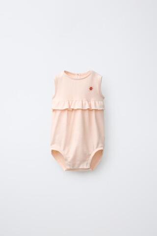 ZARA БОДИ С ВОЛАНАМИ И ВЫШИВКОЙ «СОЛНЦЕ», МАНДАРИНОВЫЙ