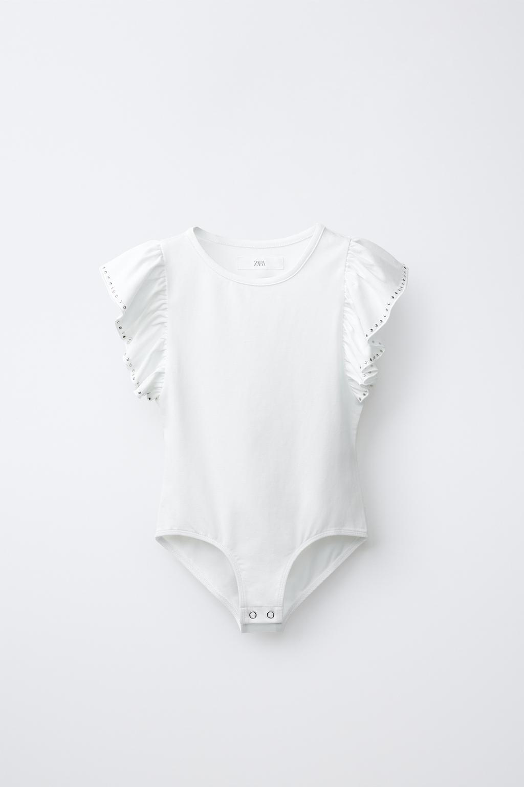 ZARA БОДИ С ВОЛАНОМ И ЗАКЛЕПКАМИ ИЗ МОДАЛА, БЕЛЫЙ