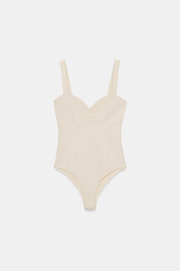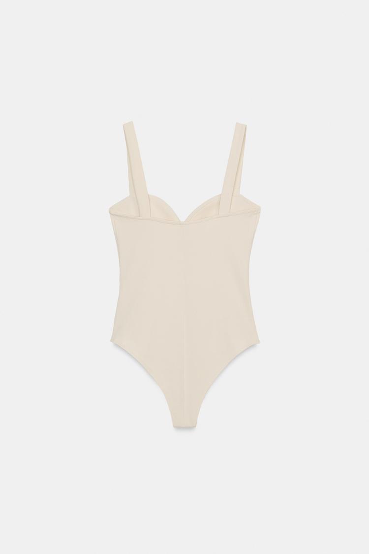 ZARA БОДИ С ВЫРЕЗОМ СЕРДЕЧКОМ НА БРЕТЕЛЯХ, ЭКРЮ