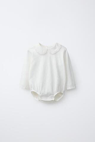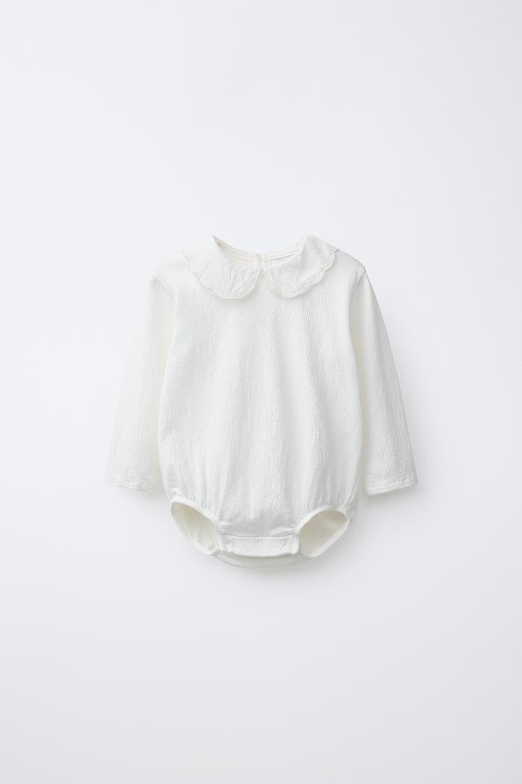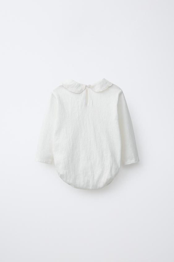 ZARA БОДИ С ВЫШИТЫМ ОТЛОЖНЫМ ВОРОТНИКОМ, ЖЕЛТОВАТО-БЕЛЫЙ