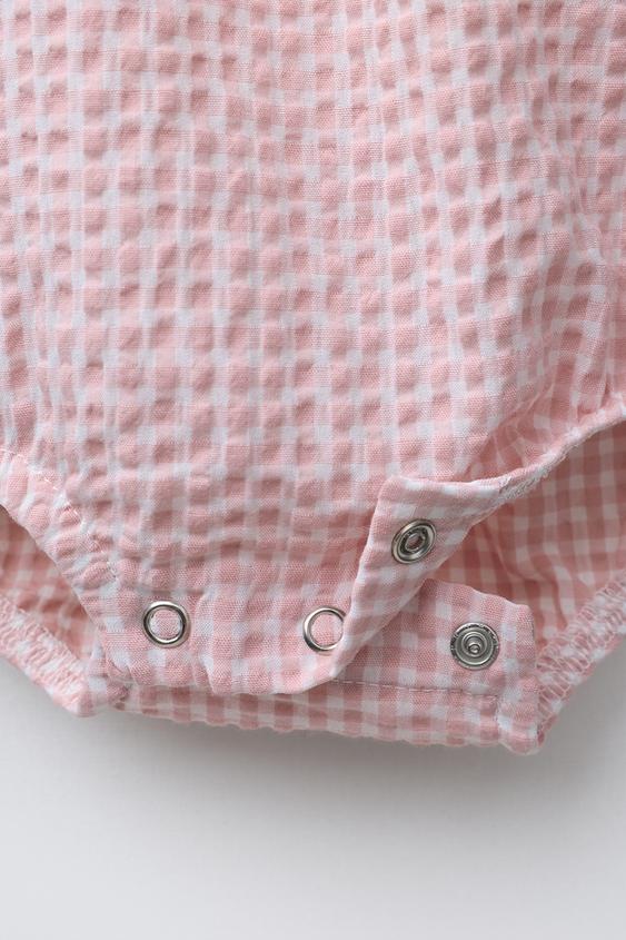 ZARA БОДИ С ВЫШИВКОЙ В КЛЕТКУ ВИШИ, РОЗОВЫЙ