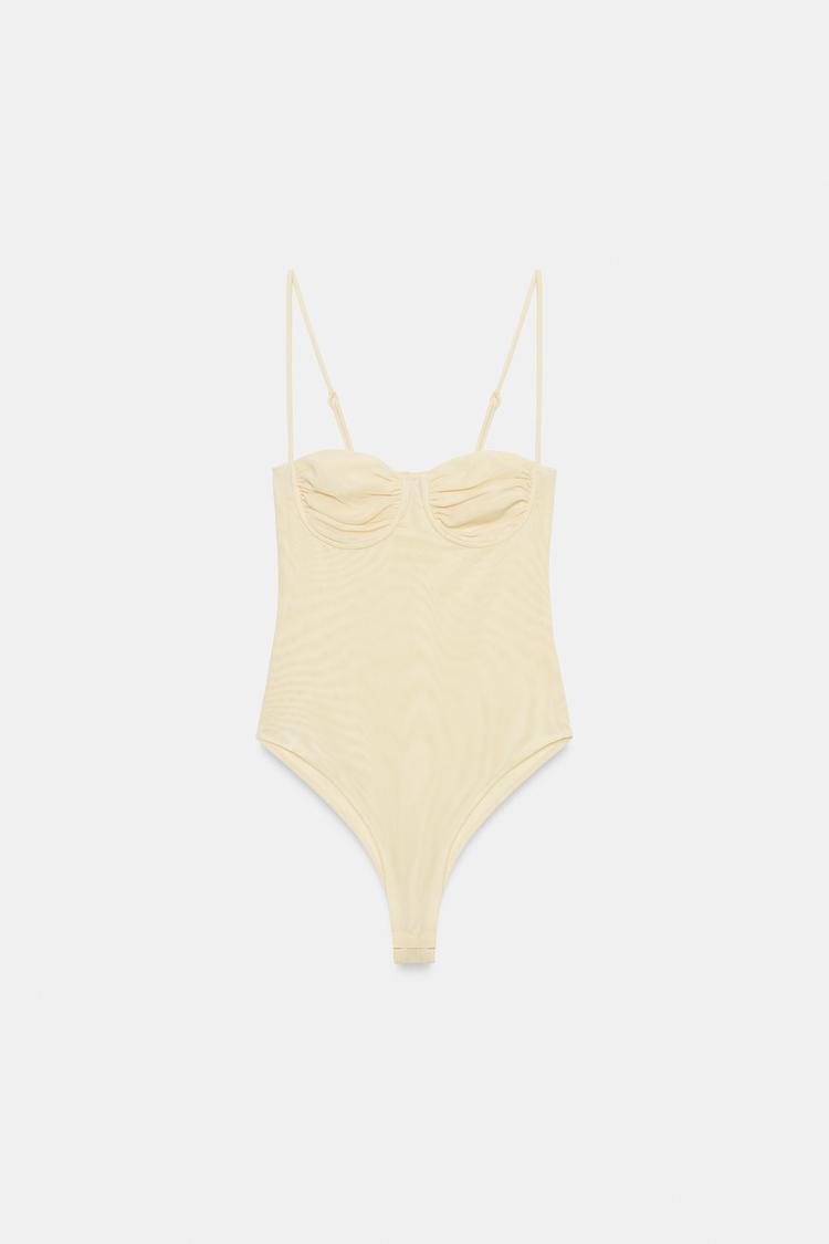ZARA БОДИ СО СБОРКАМИ, ЖЕЛТЫЙ