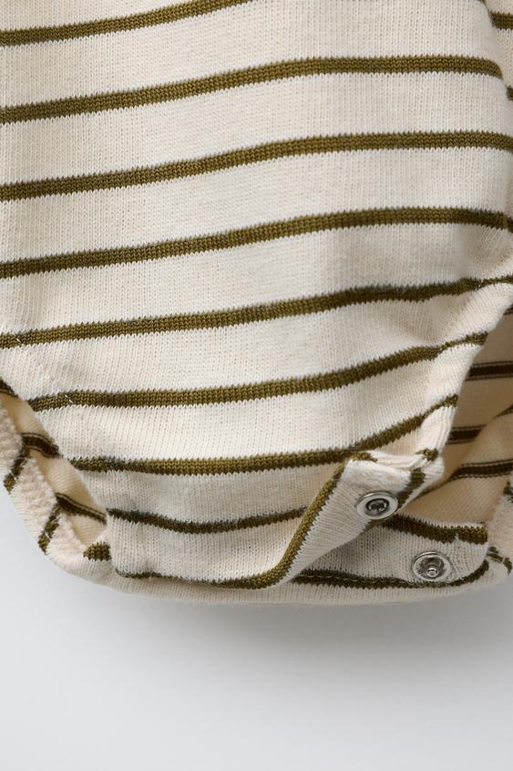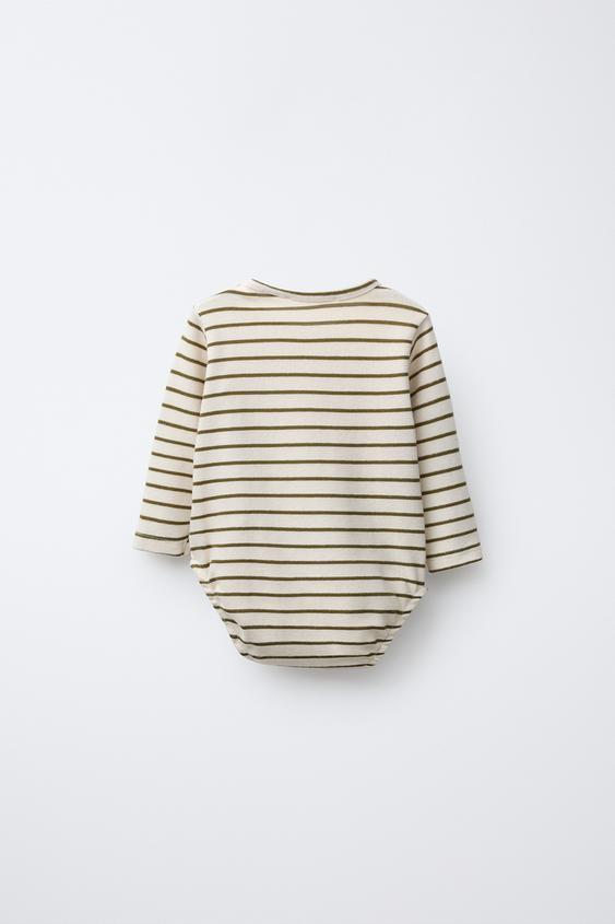 ZARA БОДИ В ПОЛОСКУ С ВЫШИТЫМ ОЛЕНЕМ, ЭКРЮ/ЗЕЛЕНЫЙ