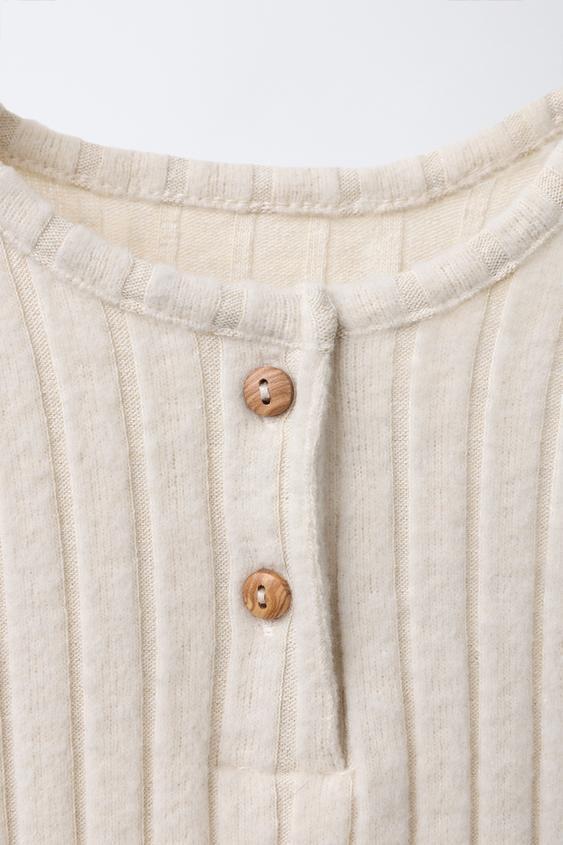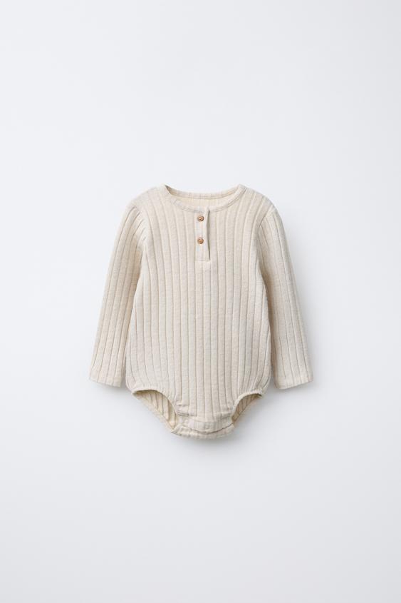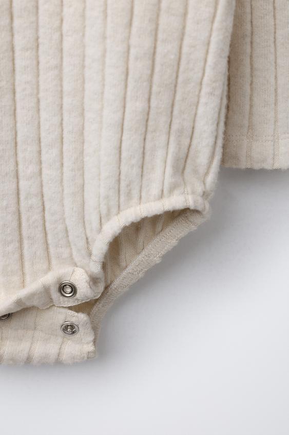 ZARA БОДИ В РУБЧИК ИЗ МЯГКОЙ ТКАНИ, БЕЖЕВЫЙ