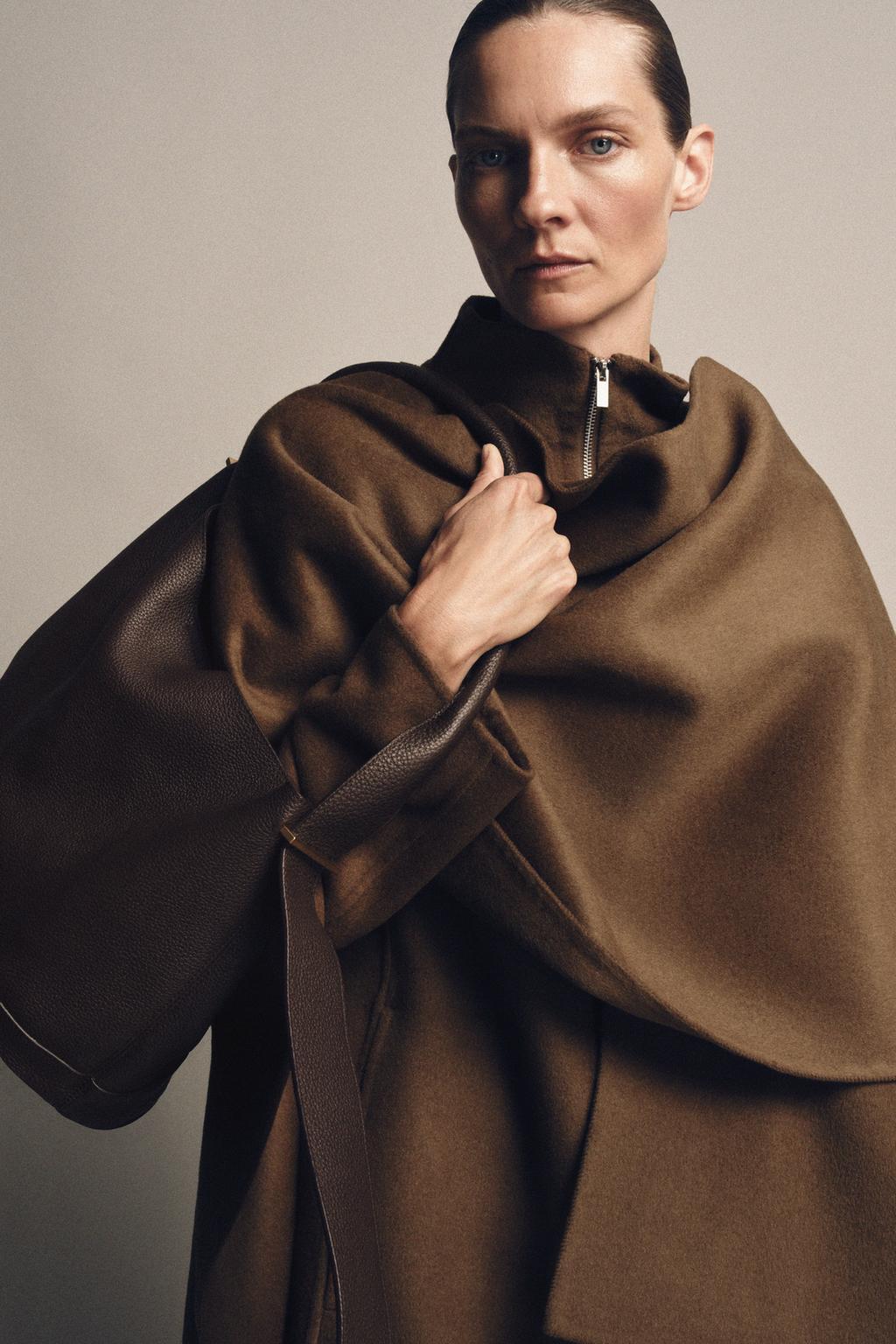ZARA БОЛЬШАЯ КОЖАНАЯ СУМКА-МЕШОК, КОРИЧНЕВЫЙ