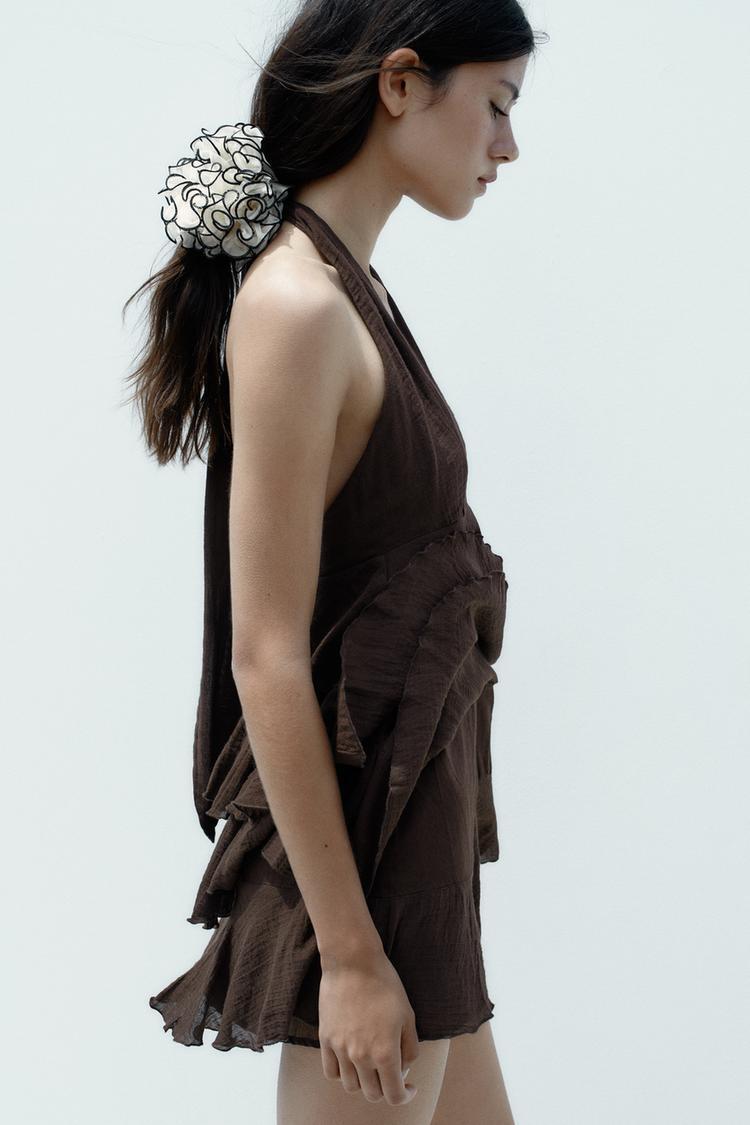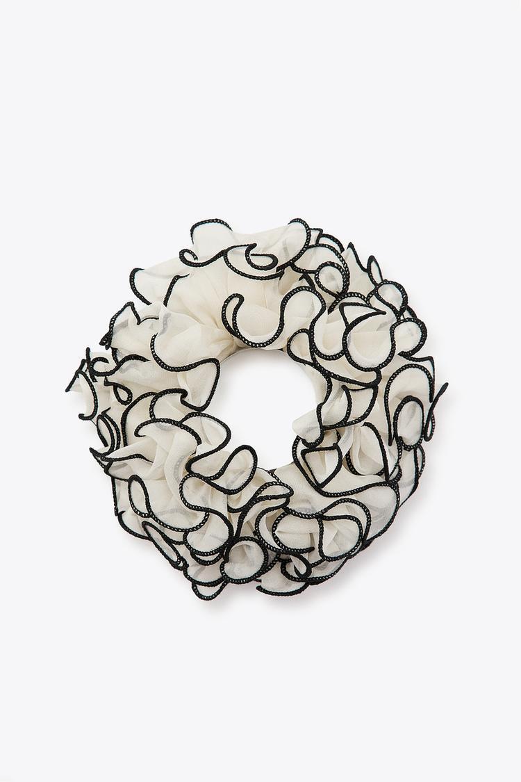 ZARA БОЛЬШАЯ РЕЗИНКА ДЛЯ ВОЛОС ИЗ ГАЗЫ С КОНТРАСТОМ, ЭКРЮ