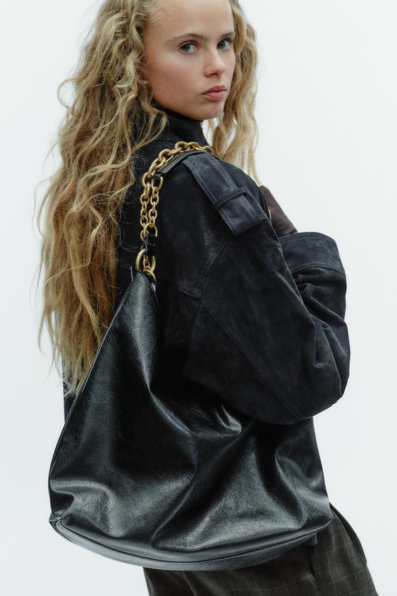 ZARA БОЛЬШАЯ СУМКА-МЕШОК, ЧЕРНЫЙ