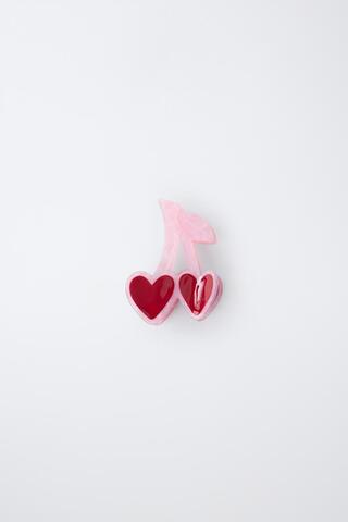 ZARA БОЛЬШАЯ ЗАКОЛКА В ФОРМЕ ВИШНИ, РОЗОВЫЙ