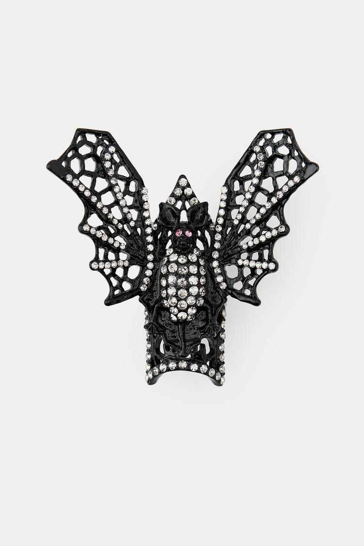 Большое металлическое кольцо в виде летучей мыши с контрастными блестками.