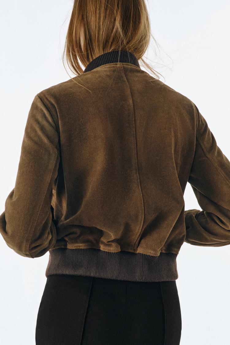 ZARA БОМБЕР ИЗ 100% ЗАМШИ — LIMITED EDITION, ZW COLLECTION, ТЕМНЫЙ ХАКИ