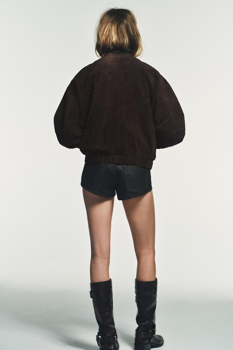 ZARA БОМБЕР ИЗ 100% ЗАМШИ, ШОКОЛАДНО-КОРИЧНЕВЫЙ