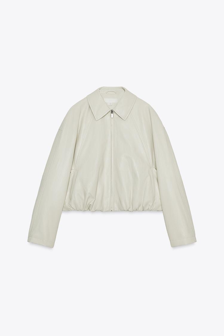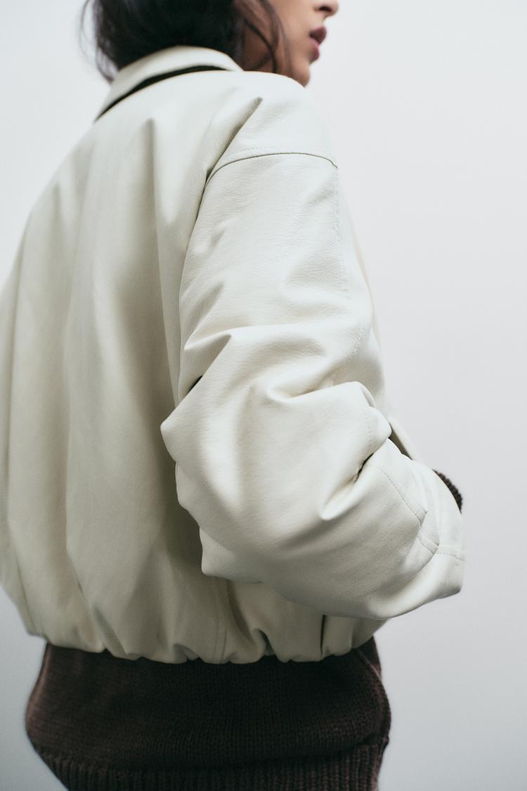 ZARA БОМБЕР ИЗ ИСКУССТВЕННОЙ КОЖИ, ЭКРЮ