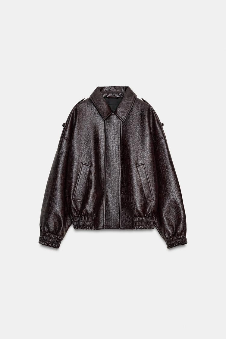 ZARA БОМБЕР ИЗ ИСКУССТВЕННОЙ КОЖИ — ZW COLLECTION, БОРДОВЫЙ