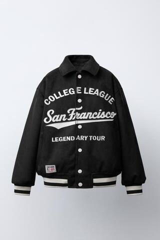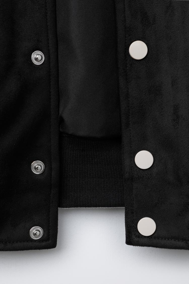 ZARA БОМБЕР ИЗ ИСКУССТВЕННОЙ ЗАМШИ С ВЫШИТЫМ ТЕКСТОМ, ЧЕРНЫЙ