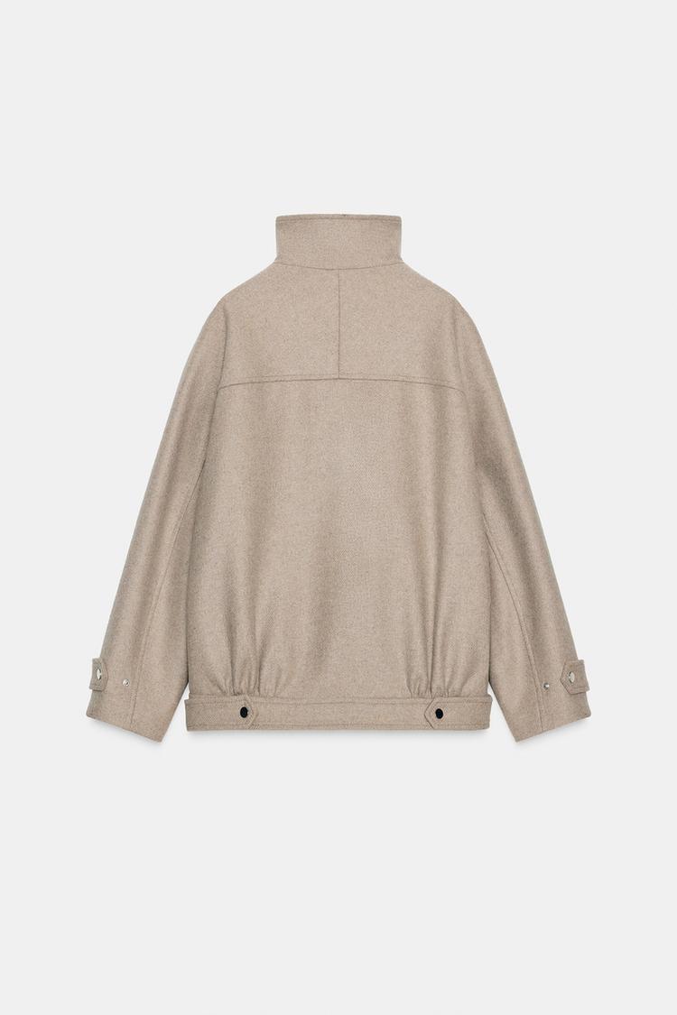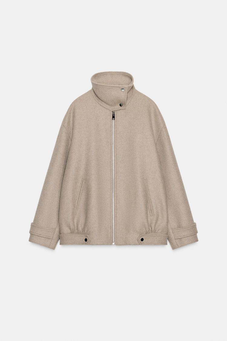 ZARA БОМБЕР ИЗ ШЕРСТИ С ВЫСОКИМ ВОРОТНИКОМ, СВЕТЛЫЙ СЕРО-КОРИЧНЕВЫЙ